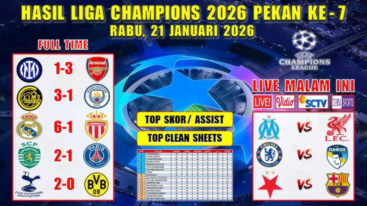 Dengan hasil tersebut, persaingan di fase grup semakin ketat. Arsenal dan Real Madrid kini berada dalam posisi kuat menuju babak 16 besar, sedangkan Man City dan PSG harus bekerja keras untuk mempertahankan peluang mereka.