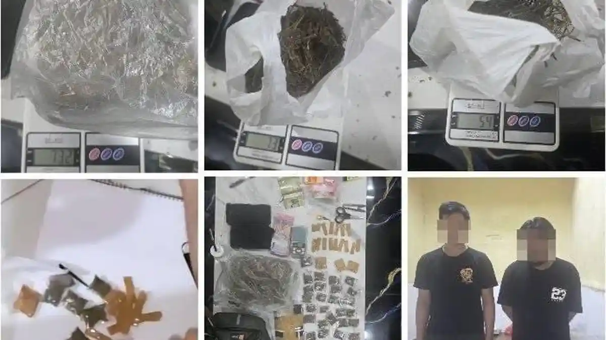 • Ganja: Total berat bruto mencapai lebih dari 1 kilogram, yang terdiri dari 1 paket besar (732 gram), 2 paket sedang (73 gram & 54 gram), serta 45 paket kecil siap edar seberat 300 gram.